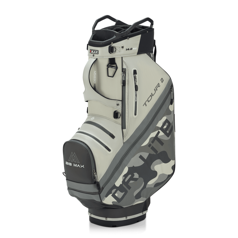 Mit 9 geräumigen Taschen, darunter drei wasserdichte Fächer, bewahrt der Dri Lite Tour 2 Ihre Accessoires und Wertsachen sicher auf. Seitentaschen mit inneren Reißverschlussbereichen ermöglichen eine organisierte Aufbewahrung auf dem Golfplatz. Zu den neuen Features gehören ein Zink-Karabiner-Handtuchhaken mit integriertem Flaschenöffner und ein feines Gurtband im Club-Organizer für eine einfache Handhabung.