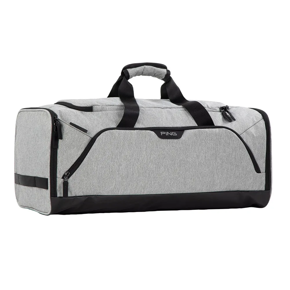 Diese Golf-Reisetasche hat die perfekte Größe für Vielseitigkeit und vereint Funktionalität und Stil. Das geräumige Hauptfach und drei Außentaschen mit Reißverschluss erleichtern die Organisation Ihrer wichtigsten Dinge, während der strapazierfähige PU-beschichtete Boden Stabilität und Langlebigkeit gewährleistet. Sie ist in einem eleganten, strukturierten Heather-Grau gefertigt und verfügt über ein austauschbares Riemendesign für bequemes Tragen in der Hand oder über der Schulter.