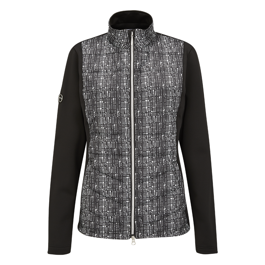 Bedruckte Hybridjacke, die für Wärme bei kaltem Wetter entwickelt wurde.