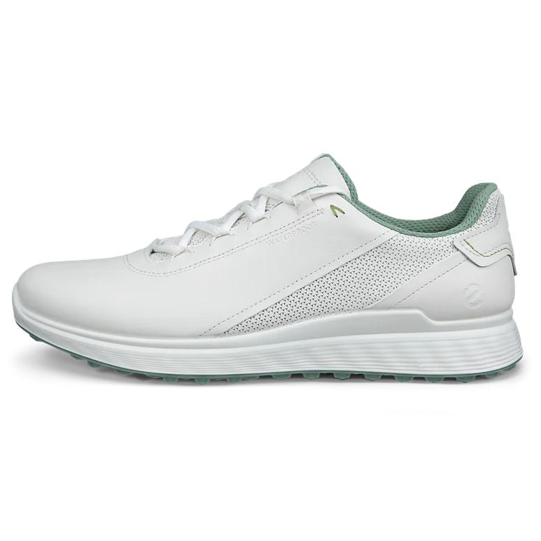 Der ECCO M GOLF S-THREE wurde mit einem neuen, lässigen Lederobermaterial und einer farblich auffälligen Laufsohle sowie der hochmodernen wasserdichten Technologie von ECCO aktualisiert und vereint überlegene Leistung mit frischem Stil für den Golfplatz und darüber hinaus. Das Obermaterial besteht aus atmungsaktivem und hochwertigem ECCO-Leder aus den eigenen Gerbereien des Schuhmachers und verfügt über Perforationen an der Seite, die die hochwertige Ästhetik dieses Hybrid-Golfschuhs für Herren unterstreichen. Die wasserdichte ECCO-TEX-Membran hält Ihren Fuß auch bei Nässe trocken und komfortabel. Während die X-TENSA INVISIBLE TECHNOLOGY die Stabilität erhöht, bietet die E-DTS®-Laufsohle mit rund 100 TPU-Traktionsleisten und 800 Grad Traktionswinkeln exzellente Traktion.